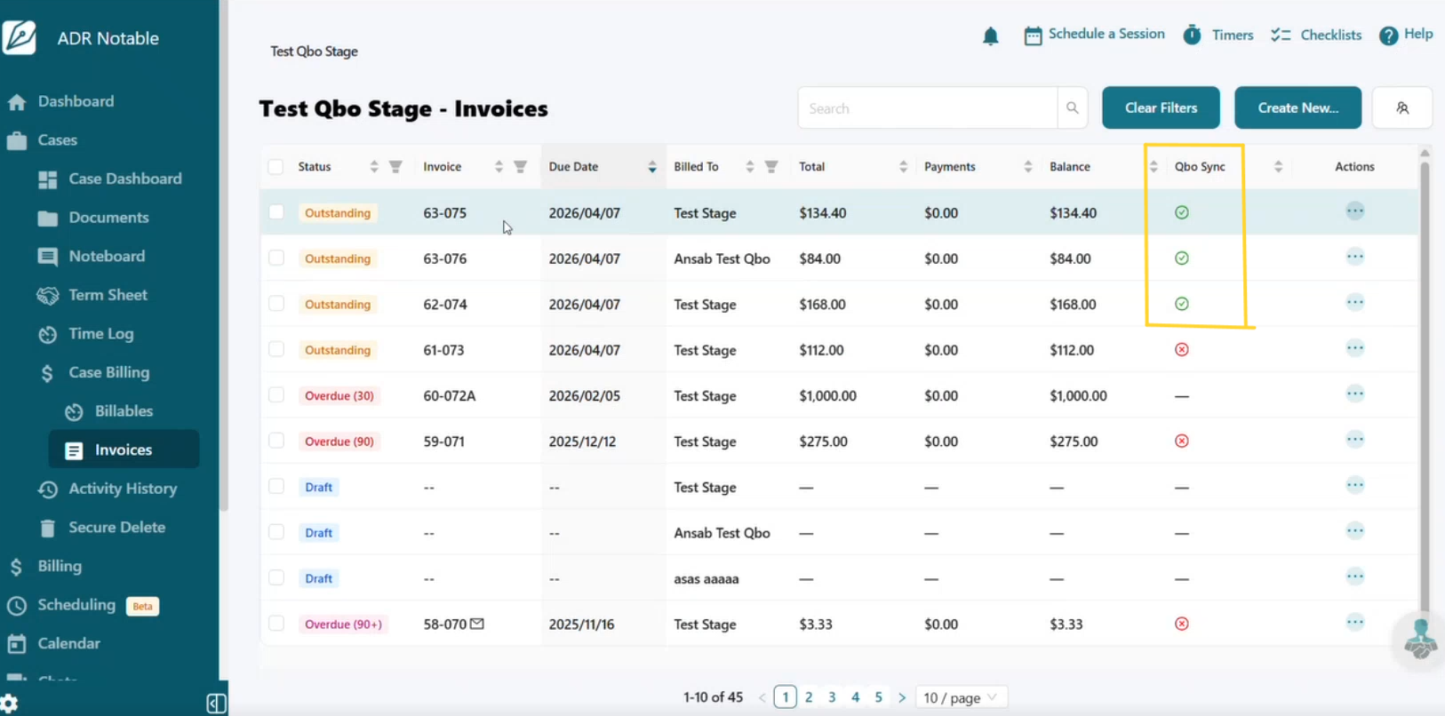 On the Invoices page, you can verify the entry(s) are syncing to QBO: